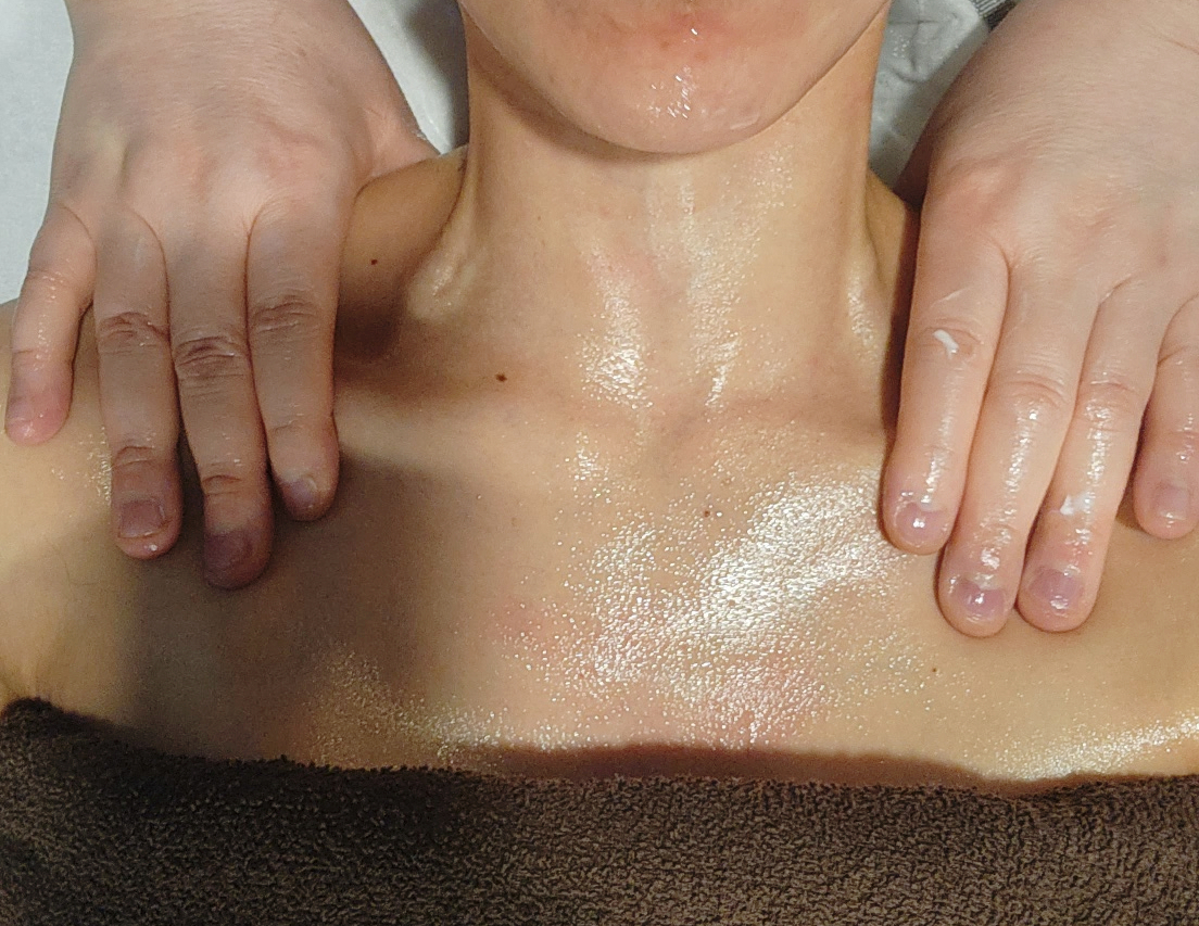 목, 쇄골, 어깨라인, 가슴윗부분 까지 풀어주는 마사지