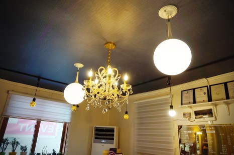 들어가니 샹들리에 조명과,