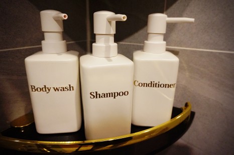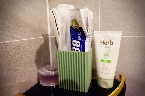 샤워실에도 일회용 칫솔, 샴푸, 컨디셔너,