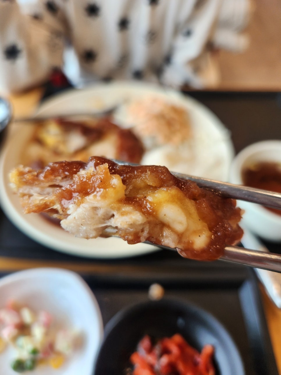 돈까스 튀김옷도 바삭하고, 안에 고구마와 치즈도 있어서 맛있었어요😍