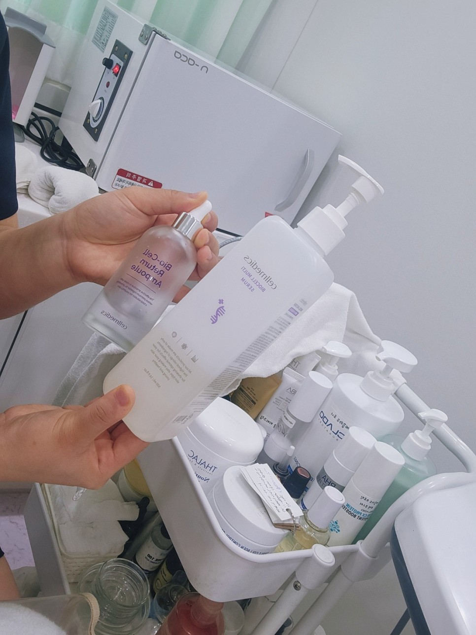 앰플을 얼굴 전체에 발라주신후에 초음파 기계로 얼굴과 목 부위까지 잘 흡수하도록 도와주심.