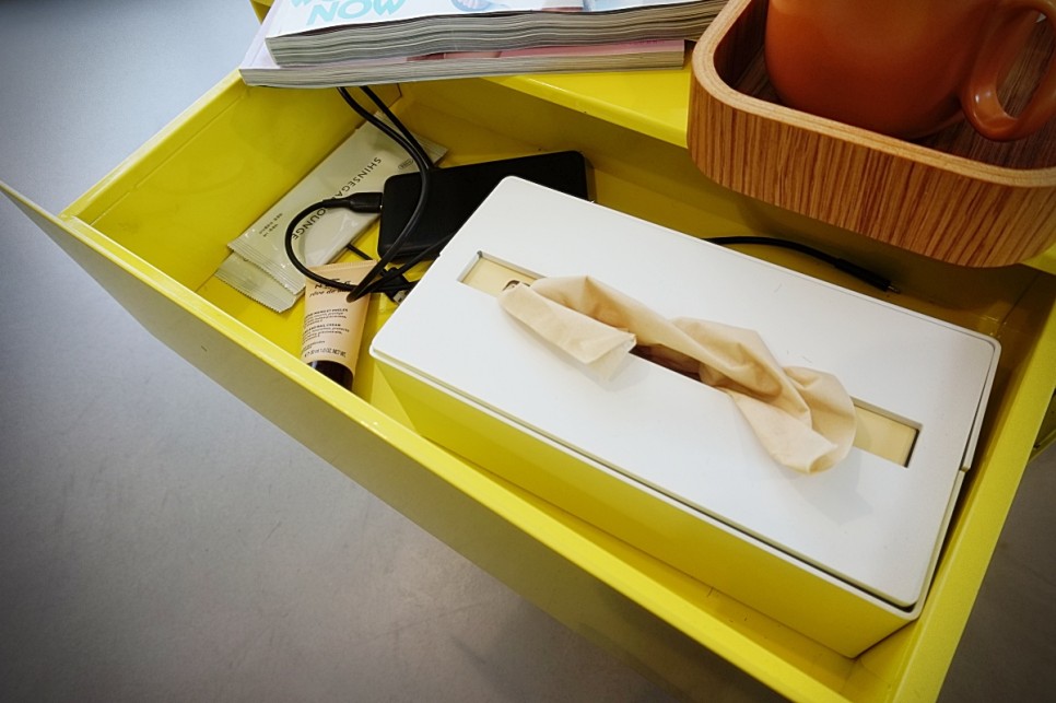 밑에 서랍에는 물티슈, 보조배터리, 핸드크림까지