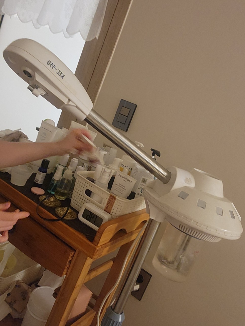 클렌징을 하고 딥클렌징 진행 ㅎㅎ 클렌징 진행할 때는 요 기계를 계속 틀어놓고 하는데, 가습기처럼 막 연기가 나오면서