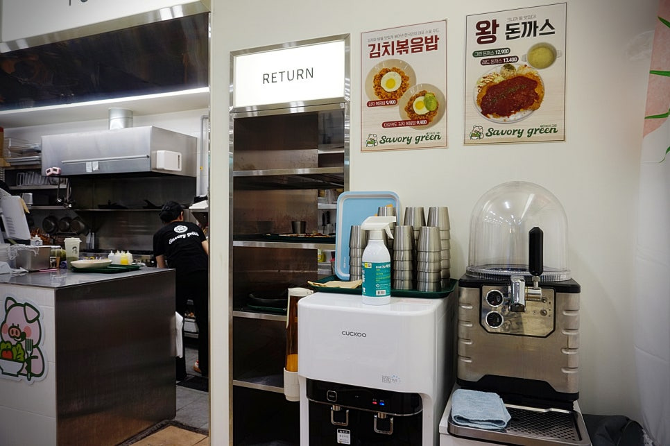 다 먹고 난 뒤엔, 쟁반은 셀프로