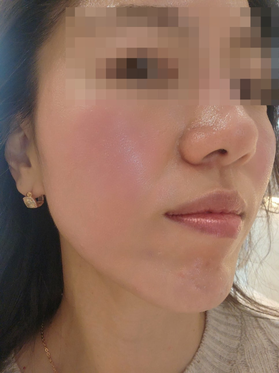 왼쪽도 다 받고 나니 두 턱선들이 업업!!