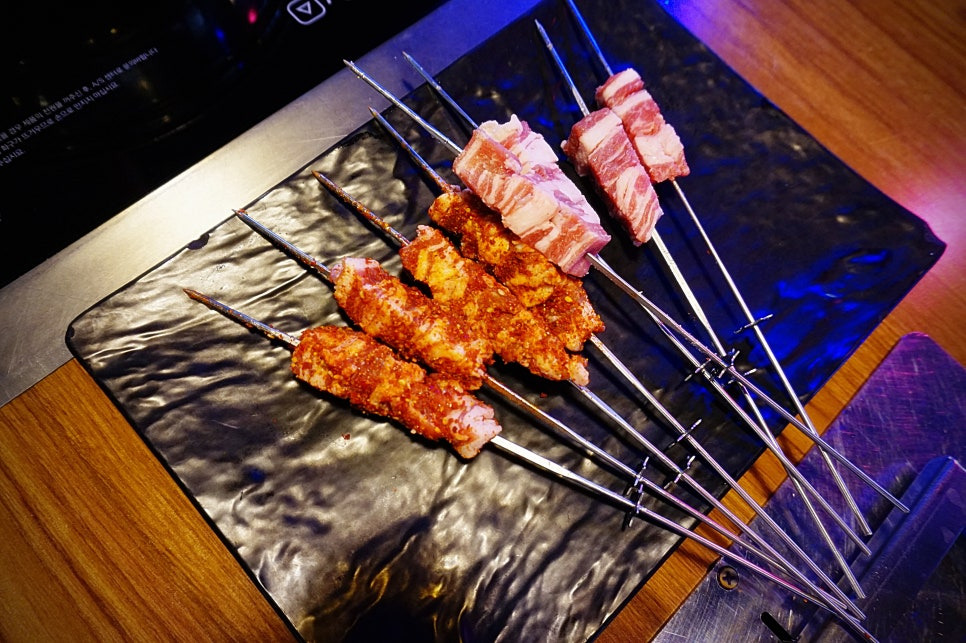양념과 양념 안 된 양꼬치. 싱싱하고