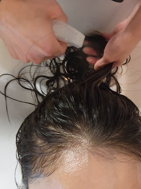 분무기로 촥촥 뿌려서 머리카락 안쪽까지