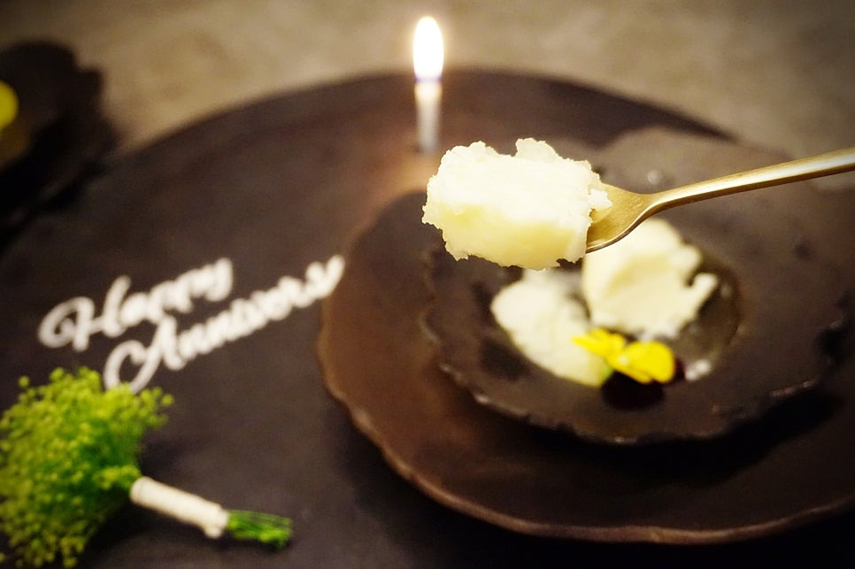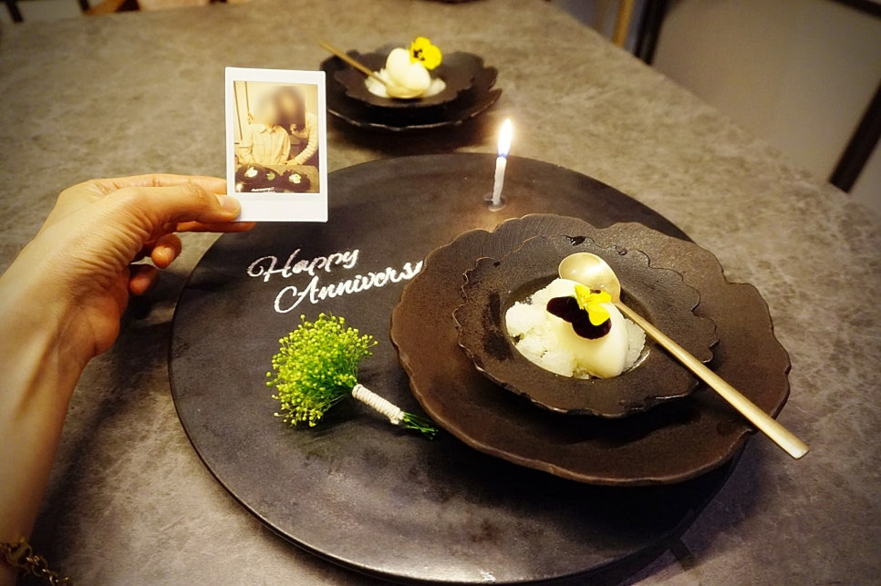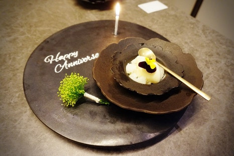 기념일 요청시 디저트에 레터링, 폴라로이드, 샴페인 각 1잔씩