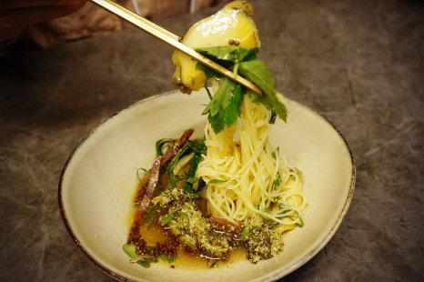 가리비관자, 들기름 한우국수, 비장탄프리미엄한우구이