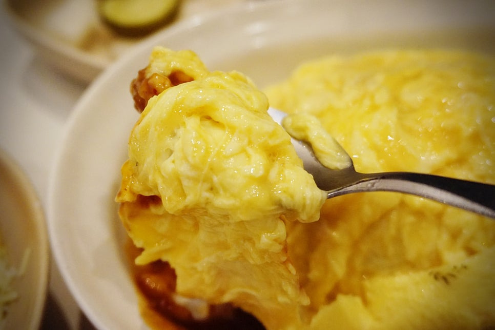 오믈렛 안에 숨어있는 부드러운 계란.
