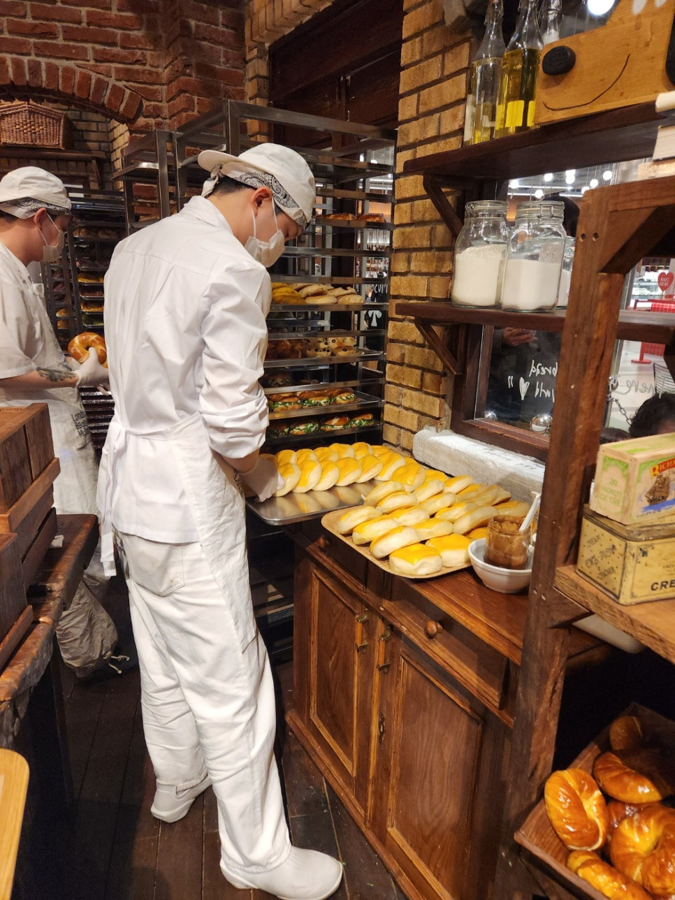 빵이 계속 빠지기 때문에 직원분도 계속 채워넣어요.