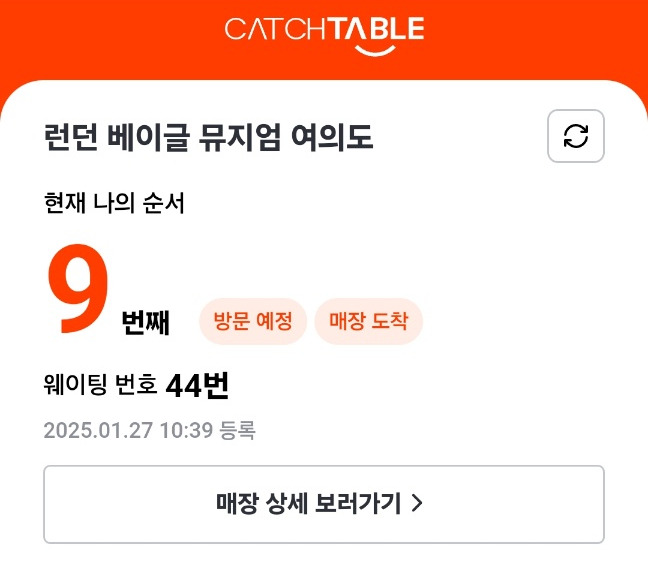 캐치테이블에 등록되면, 이렇게 나의 순서가