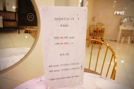 아이브로우바 메이킹왁싱 신림점 금액표인데요.