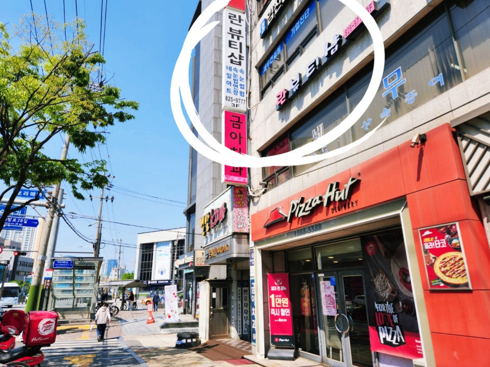 보라매역 2번출구 바로 앞, 피자헛 건물