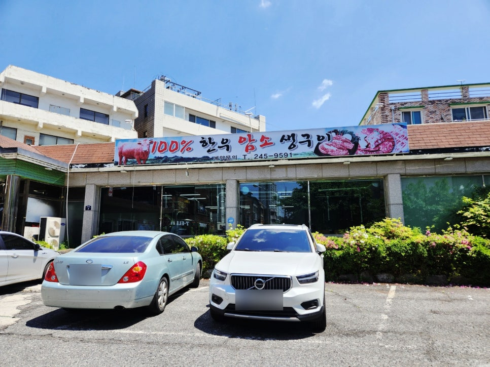 100% 한우암소생구이 식당 앞에 넓은