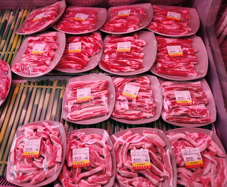 삼겹살, 오겹살, 항정살 등 돼지고기도 있는데,