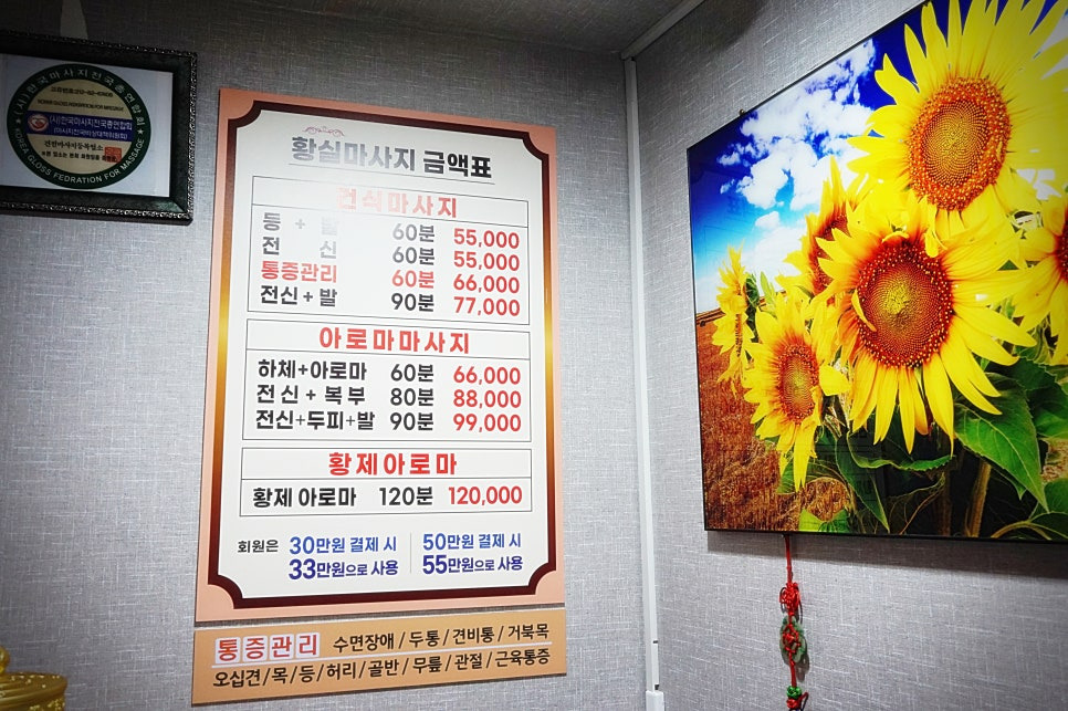 통증관리부터 건식, 아로마 등 금액도 다른곳에