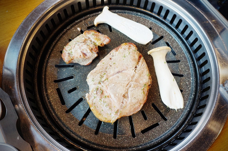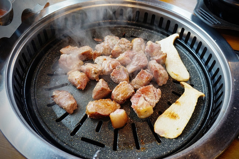 가마로 구워서 나오는 고기로 숯불향이 베어있어 배가 고파옵니다 ㅋㅋ 두께감도 정말 좋구요.