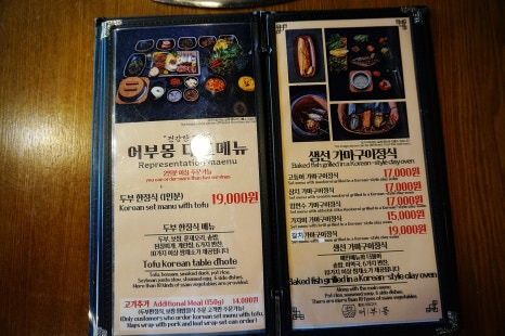 샤브샤브, 고기, 생선구이, 쌈밥정식 등