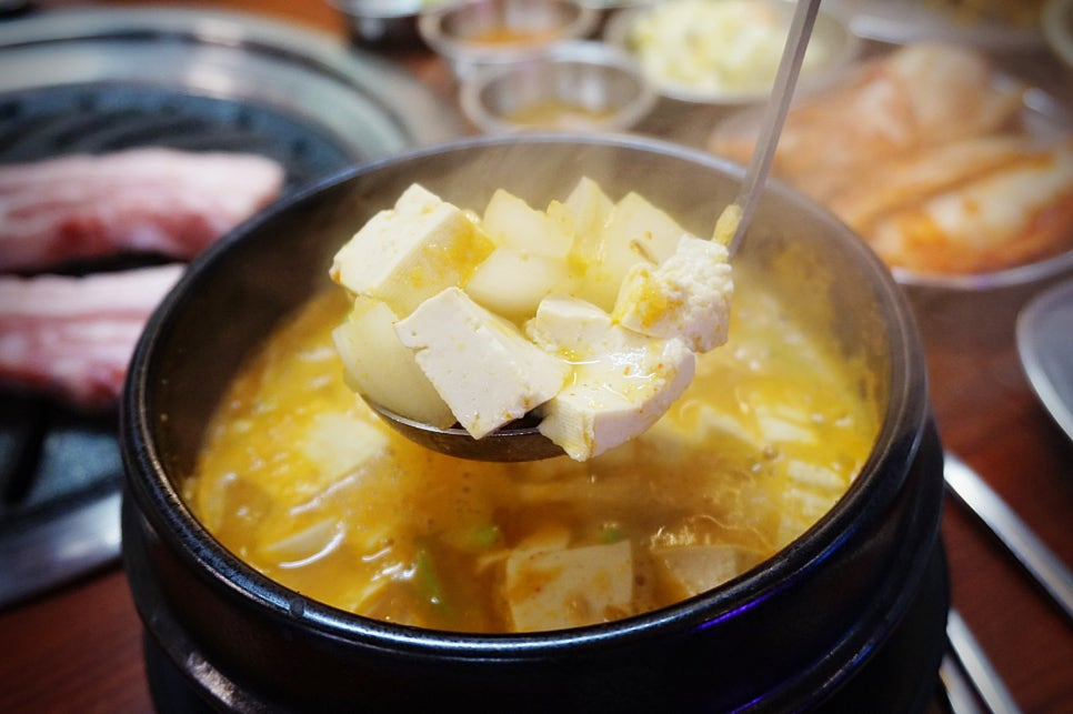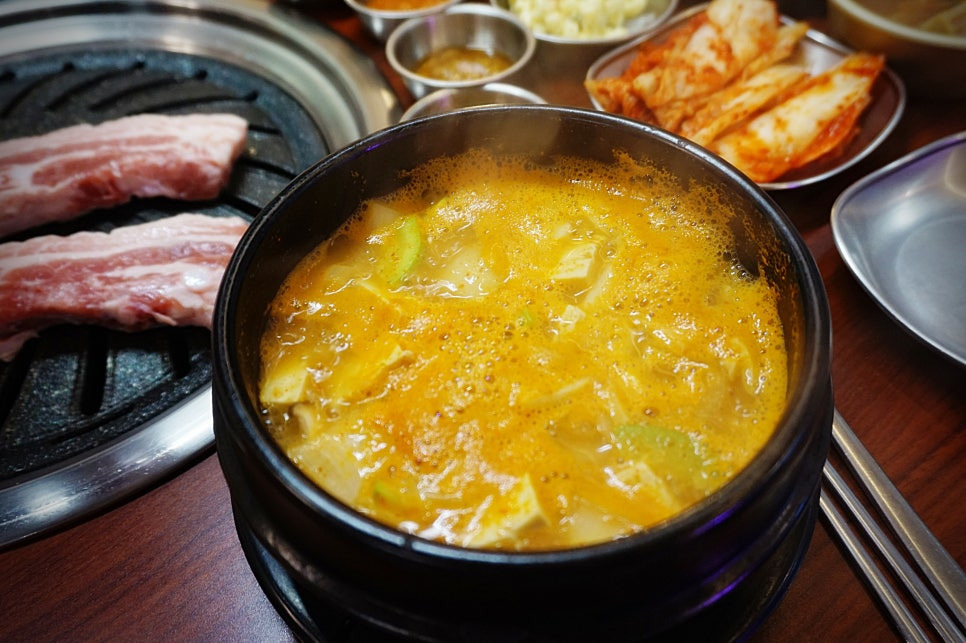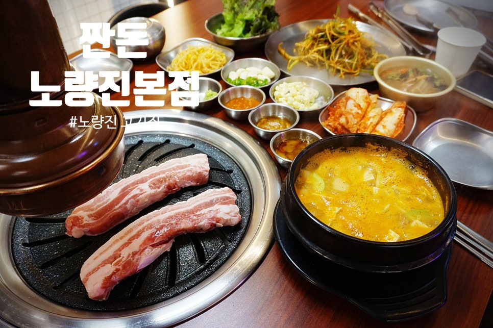 저희처럼 비오는날 고기에 소주한잔 하시는 분들이 많더라구요. 전 술은 못했지만🤣 맛있는 삼겹살과 된장찌개, 계란찜이 있는 곳.노량진고기집 "짠돈"을 소개합니다♥