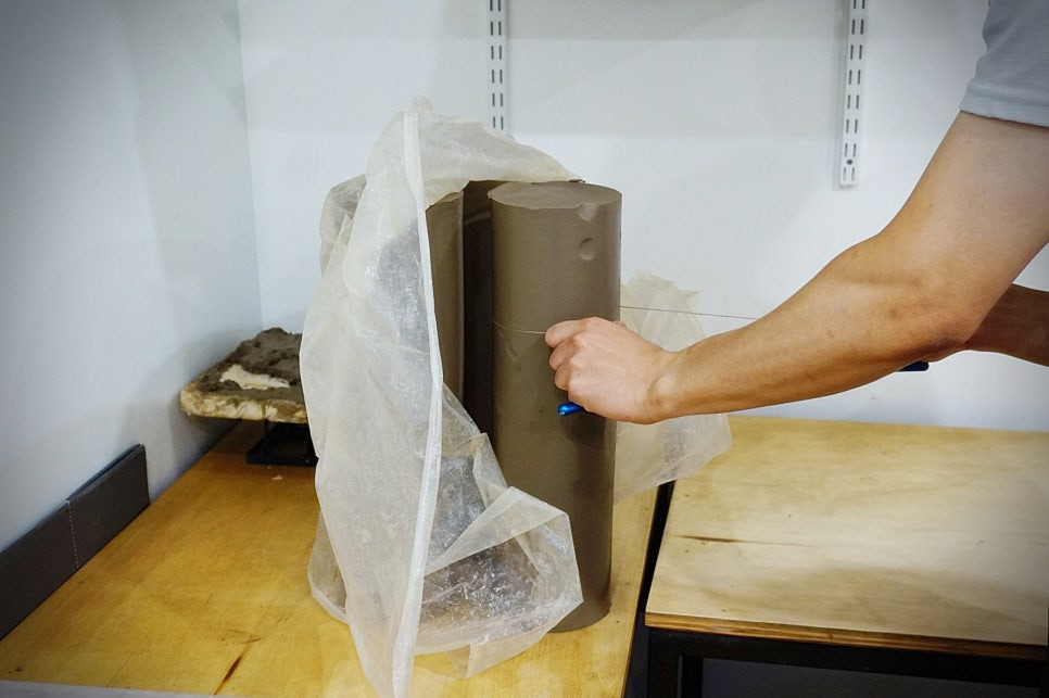오늘 사용할 흙을 잘라내고 부드럽게