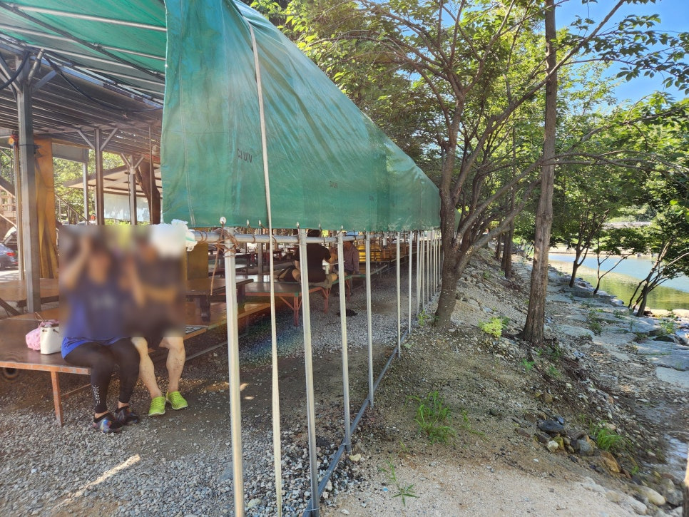 처음에는 계곡 있는 쪽으로 앉으려고 했는데