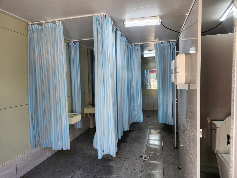 거기도 화장실두칸, 샤워기 2대라 밀리지 않아요. 온수도 정말 빵빵하게 잘나와요🖐