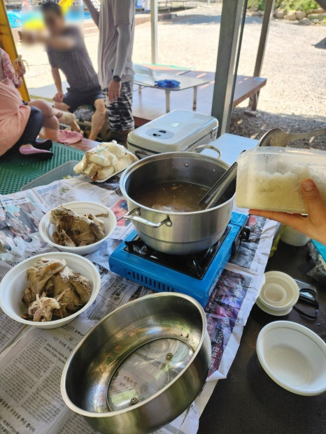 동생이 저녁에 열심히 쪄온 삼계탕.