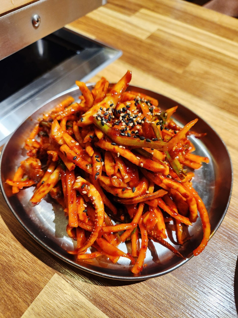 오징어 회무침은 매콤하고 맛있어요.