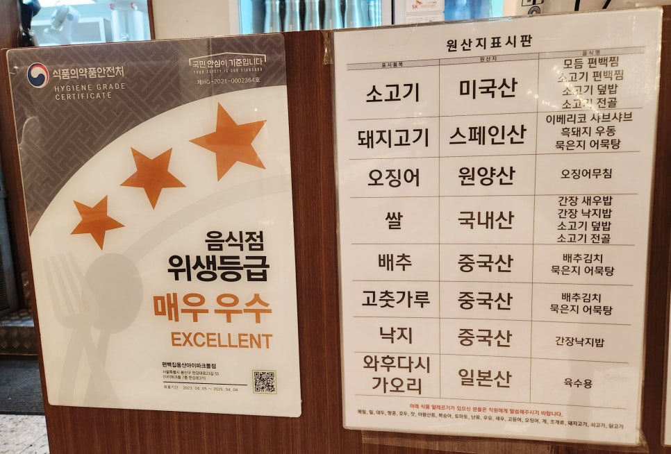 음식점 위생등급 매우우수!!