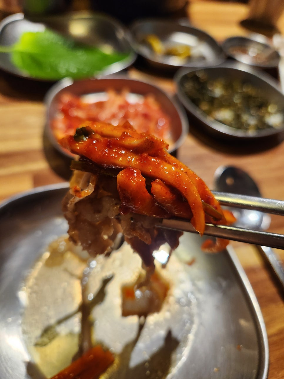 오징어 회무침에다가 고기곁들여