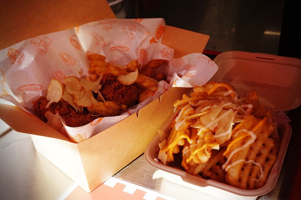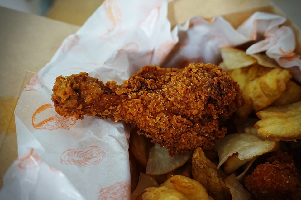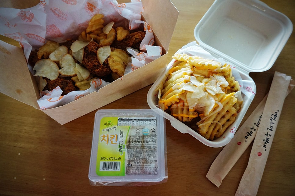 주문한 치킨과 감자튀김이 드디어 나왔어요.