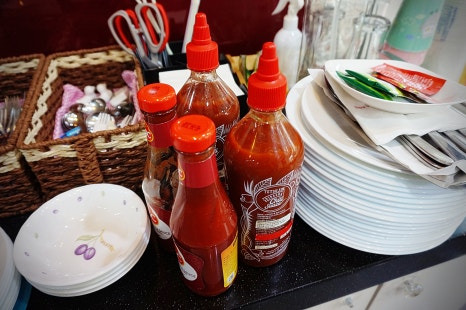 셀프바에 스리라차 소스, 핫소스, 가위, 물티슈 등 준비되어 있으니 필요하시면 가져가시면 됩니다.
