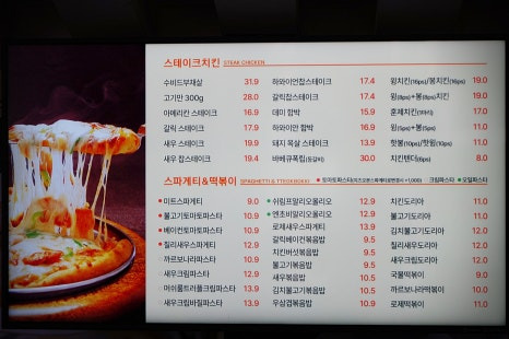 피자종류도 엄청많고, 파스타, 떡볶이,