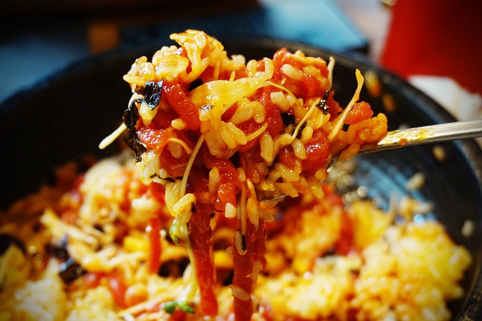 공기밥과 소스를 뿌립니다.