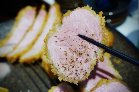 만든 돈카츠. 울긋불긋한건 덜 익은게 아니랍니다.