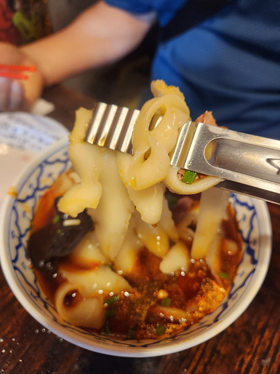 도삭면이라 신기했어요ㅋ 저 도삭면 처음봄ㅋㅋ 국물이 얼큰해 보이죠~