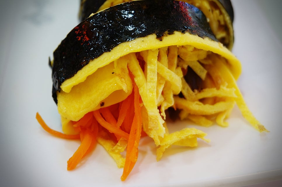 밥 대신 계란, 두부 등 저탄수화물 재료를 사용해 만든 저탄고지(저탄수화물, 고지방) 김밥을 의미합니다.