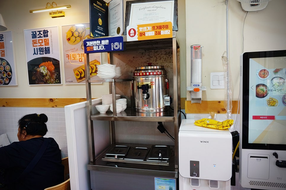 그럼에도 불구하고 열심히 열일하시는 사장님들. 일단 셀프바에서 국물이랑 단무지, 김치를 가져왔답니다.