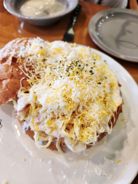 진한 크림 속 4가지의 100% 자연치즈가 주는 깊은 풍미와 부드러운 빵의 만남🖐