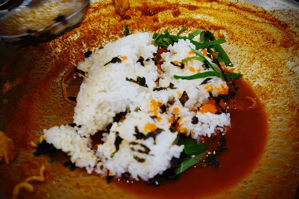 맛있게 떡볶이 다 먹고 날치알 볶음밥을 가져다 주셨어요. 볶음밥은 셀프에요. 직접 만들어야 함.