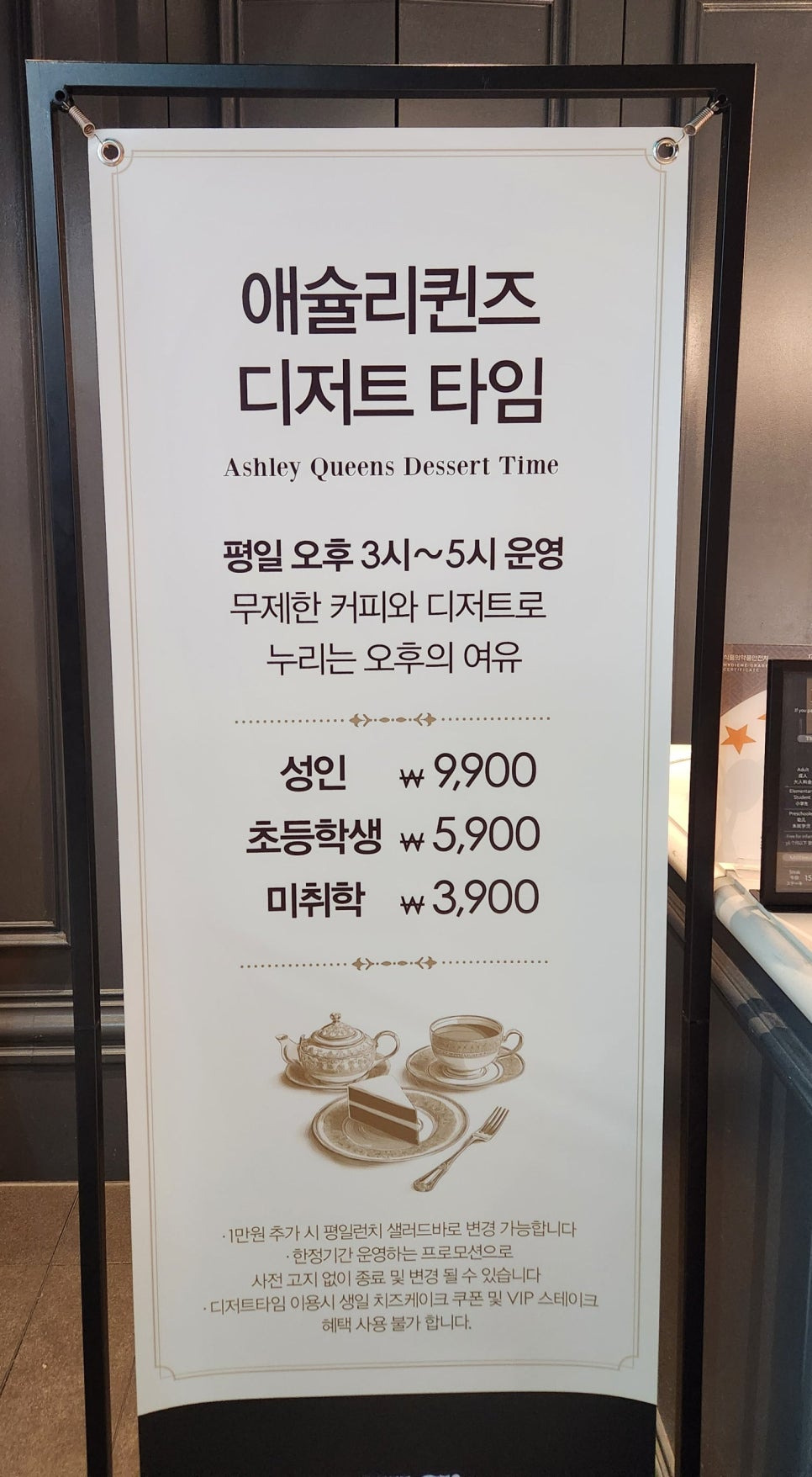 애슐리에서는 디저트타임이 따로 있는데요, 평일 오후 3시~5시까지 운영 한답니다.