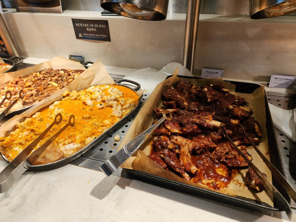 샐러드바 가까운 곳은 C구역.. 저희는 B구역 ㅠㅠ B구역에서도 조금 먼.. 테이블이라 왔다갔다.. 소화는 잘 되더라구요🤣