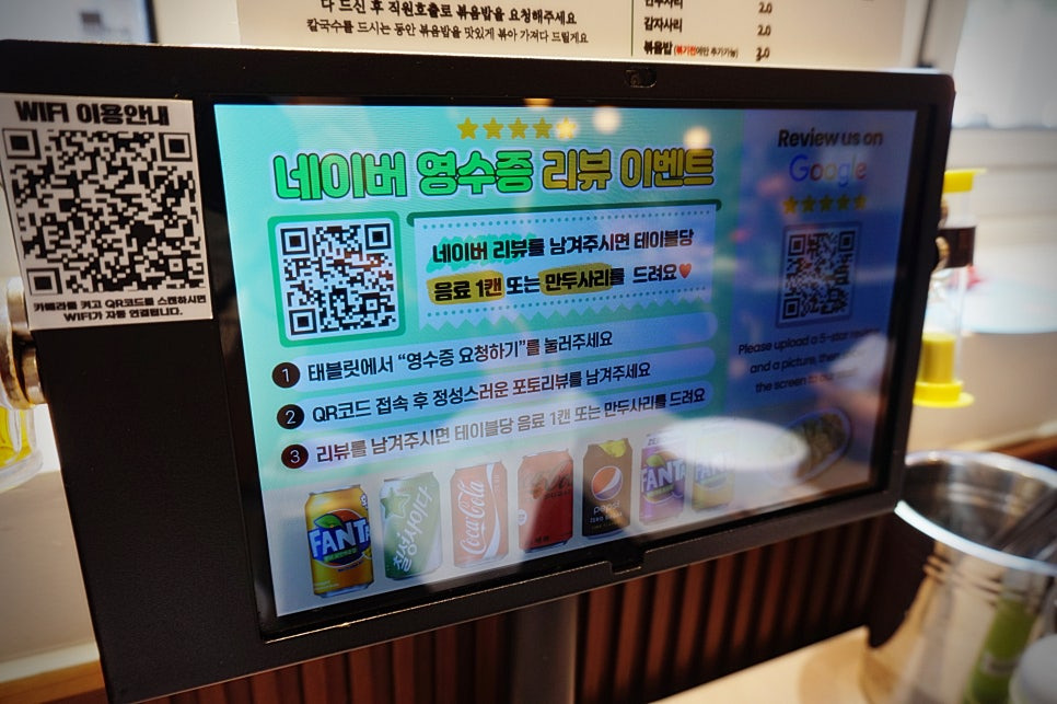 네이버 영수증 리뷰 이벤트도 있어요. 남기면 음료 1캔, 만두사리 증정. 꼭 드세용!! ㅎㅎ