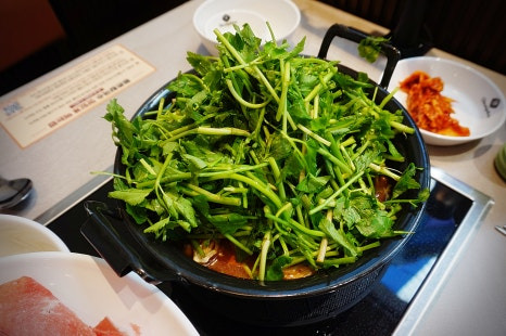 저희는 야채를 더 먹고 싶어서 야채추가했어요ㅎ 4천원에 미나리와 버섯을 푸짐하게 먹었쥬 ㅋ