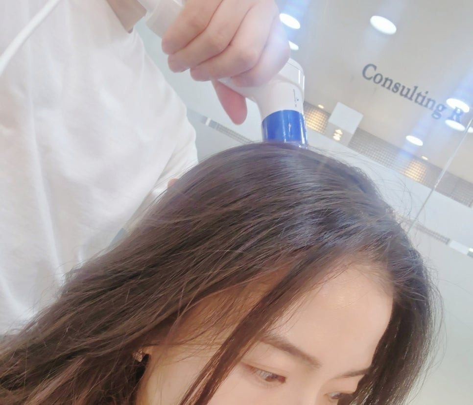 열감이 있는 두피에 진정될 수 있는 쿨링기기 진행. 엄청 차가워서 모공이 확 줄어든 기분 ㅋㅋ