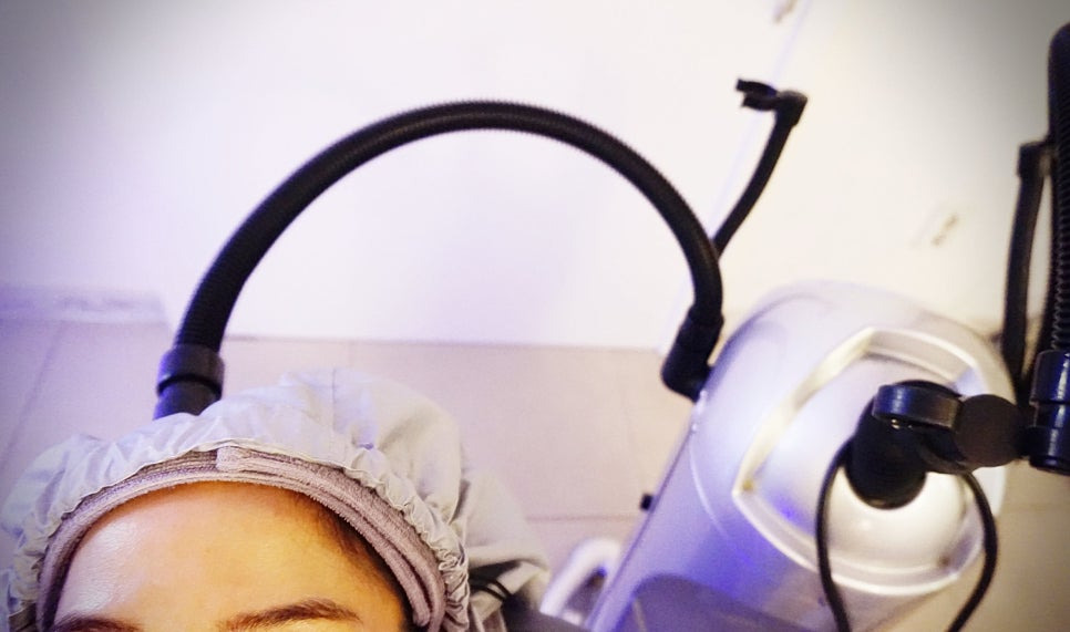 마지막 LED 기기. 수건으로 얼굴을 가려주셔서 편안하게 쉴 수 있었다. 그리고 두피에 시원함이 계속 느껴졌음 ㅋㅋ