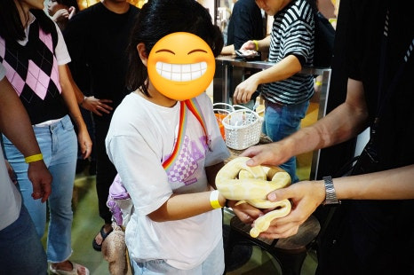 파충류 체험이 시작됐어요. 뱀인데.. 으악.. 저는 뒷걸음질;; 아이는 정말 잘 만져보더라구요. 생각보다 엄청 부드럽다믄서 >.<''