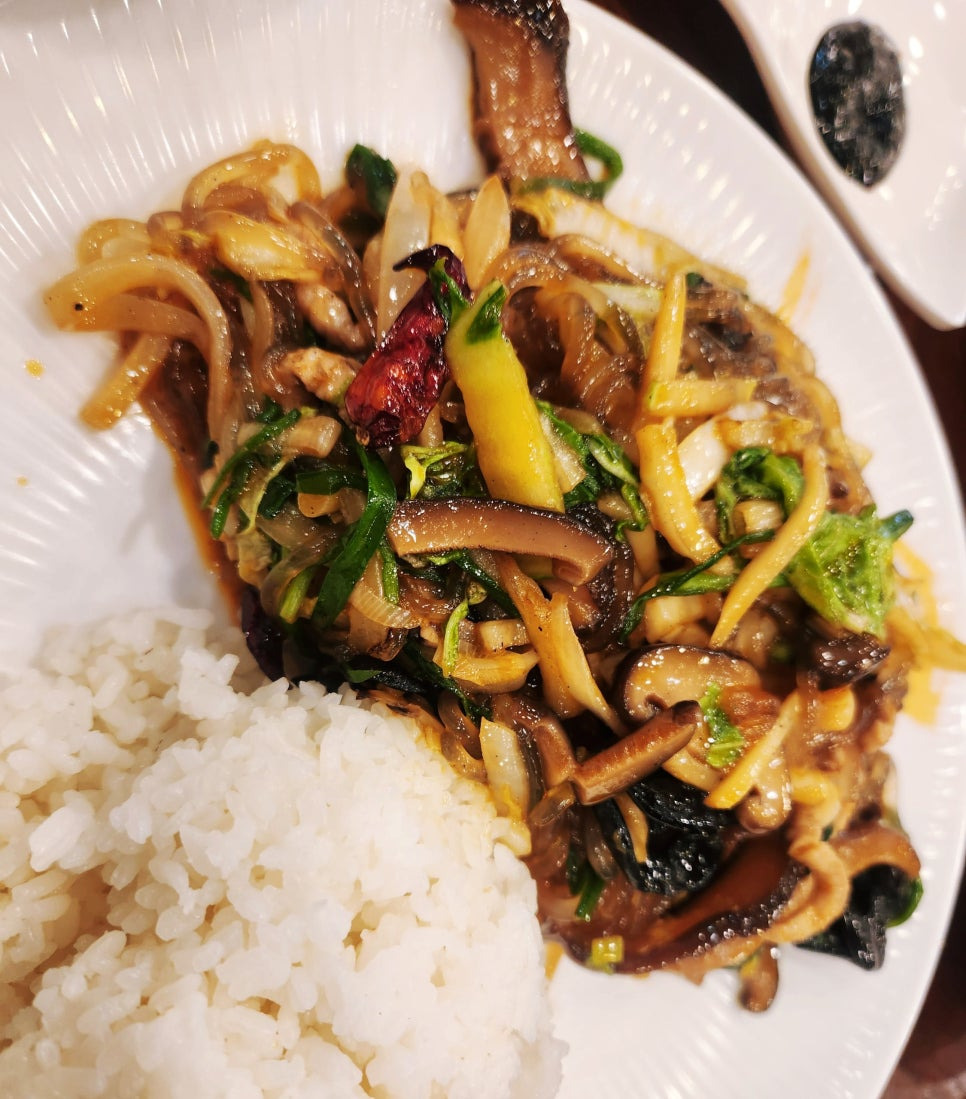 잡채밥은 저희 엄마가 드셨는데.. 음.. 솔직히 말씀드리면.. 향신료 맛이 너무 납니다.. 후추가 많이 뿌려져 있는건가? 싶었는데.. 음.. 어떻게 표현하기가 어렵네여🤔 다 못먹었어요.. 맛이 넘 별루여서요ㅠㅠ 호불호가 있는 맛일 것 같아요.