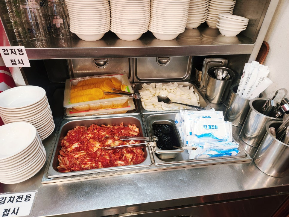 추가반찬과 식기, 물, 가위, 물티슈 등은 셀프랍니다. 양파 최고 ㅎㅎ